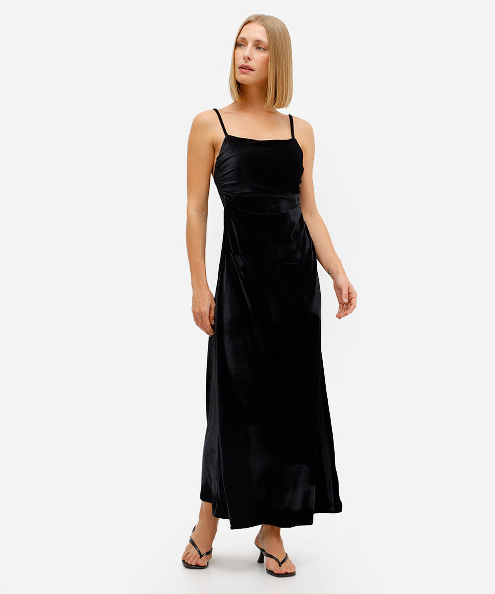 vestido slip dress midi feminino de veludo com renda mindset preto