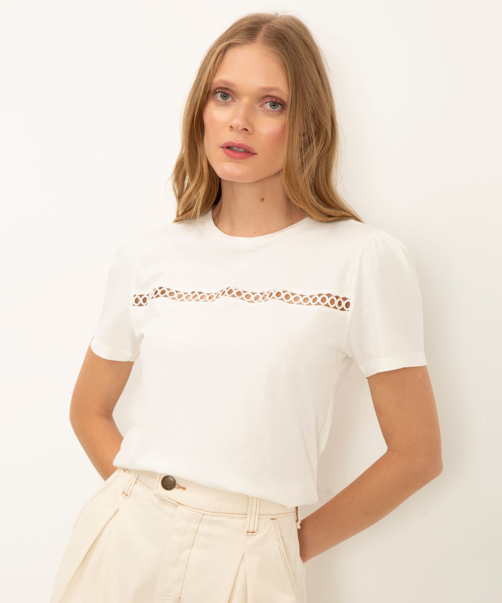 camiseta feminina de algodão peruano manga bufante off white