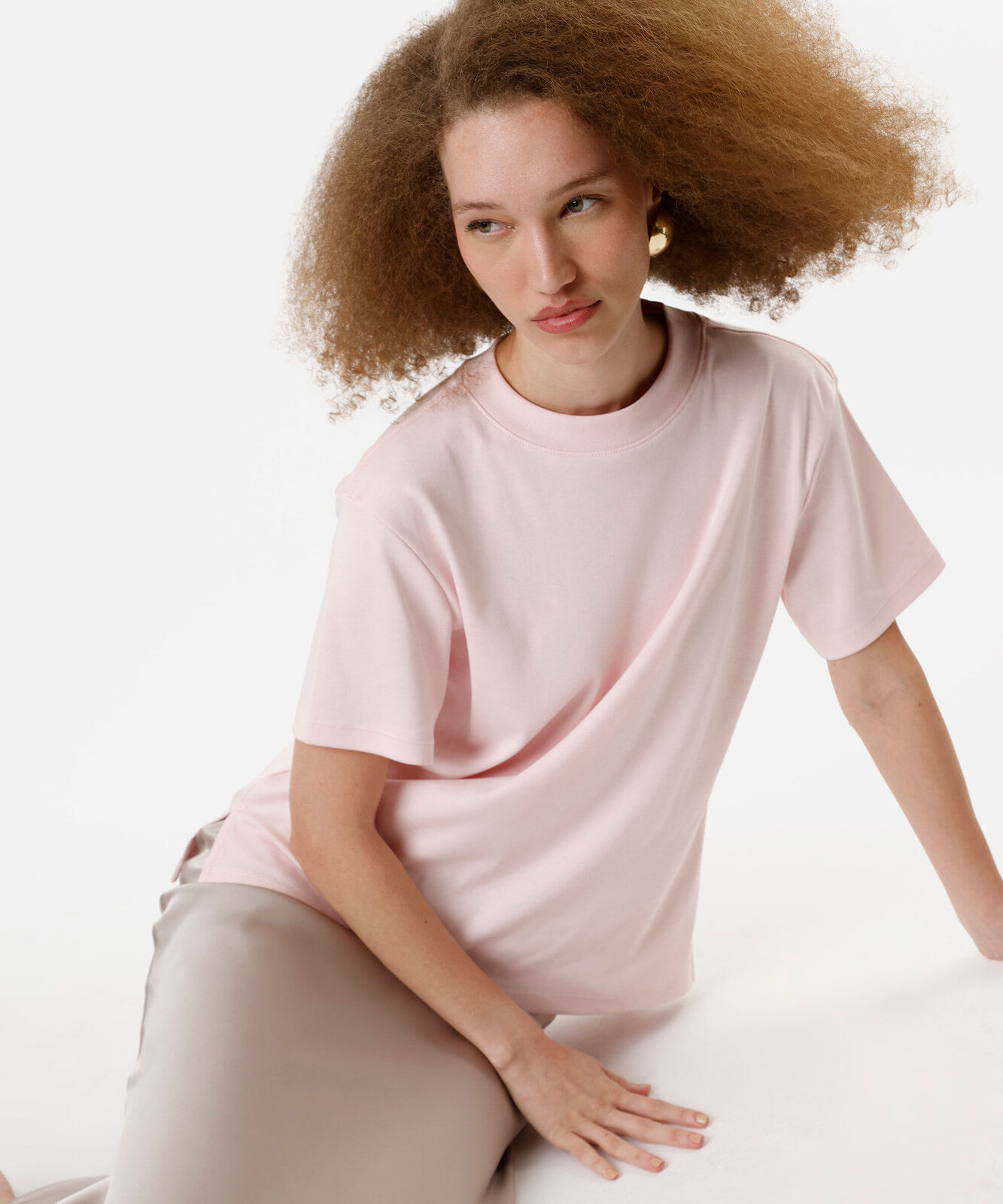 camiseta básica feminina de algodão peruano oversized com fendas rosa
