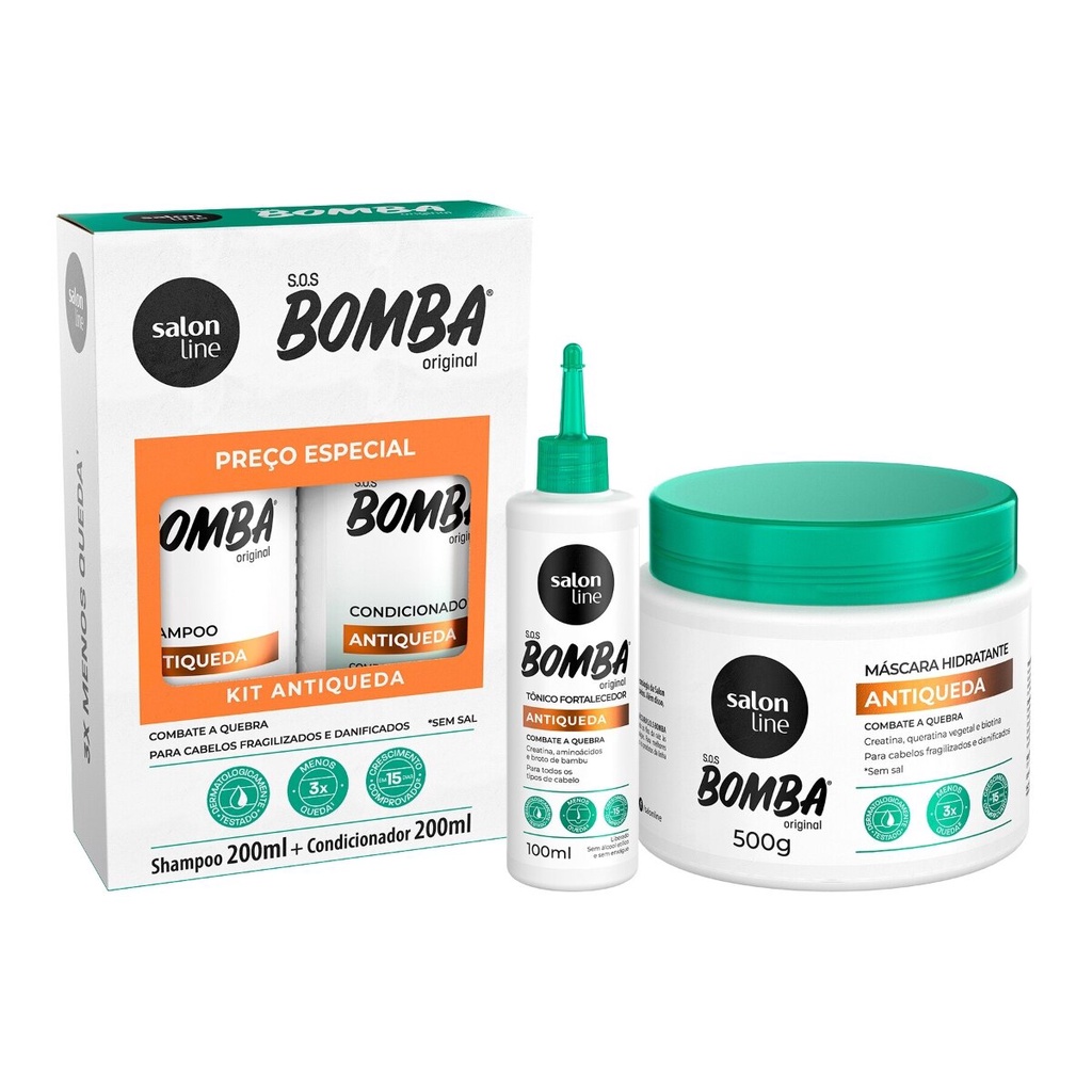 Kit SOS Bomba Antiqueda 200ml com Tônico Fortalecedor e Máscara Salon Line