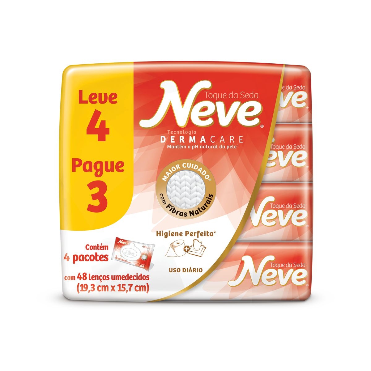 Kit 4 Pacotes 48 Lenço Toalhas Umedecidos Neve Toque De Seda