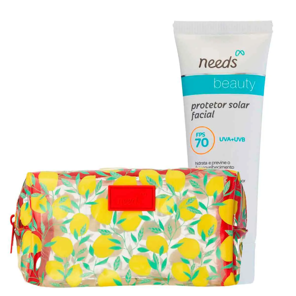 Kit Nécessaire Needs PVC Limão + Protetor Solar Facial Needs Beauty FPS 70 40g
