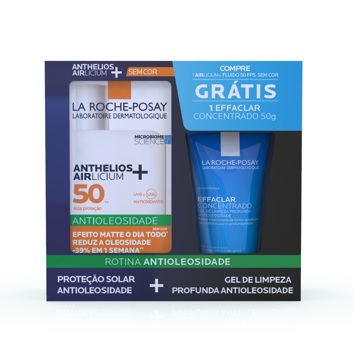 Kit La Roche-Posay Protetor Solar Facial Anthelios Airlicium+ Fluido FPS 50 40ml + Gel de Limpeza Effaclar Concentrado 50g