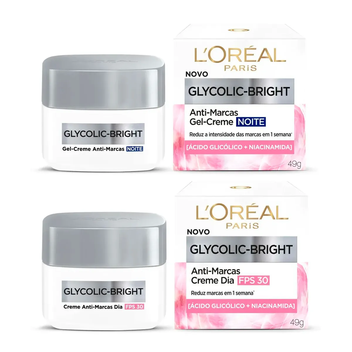 Kit L'Oreal Paris Anti-Marcas Glycolic-Bright - Creme Dia FPS30 + Gel-Creme Noite