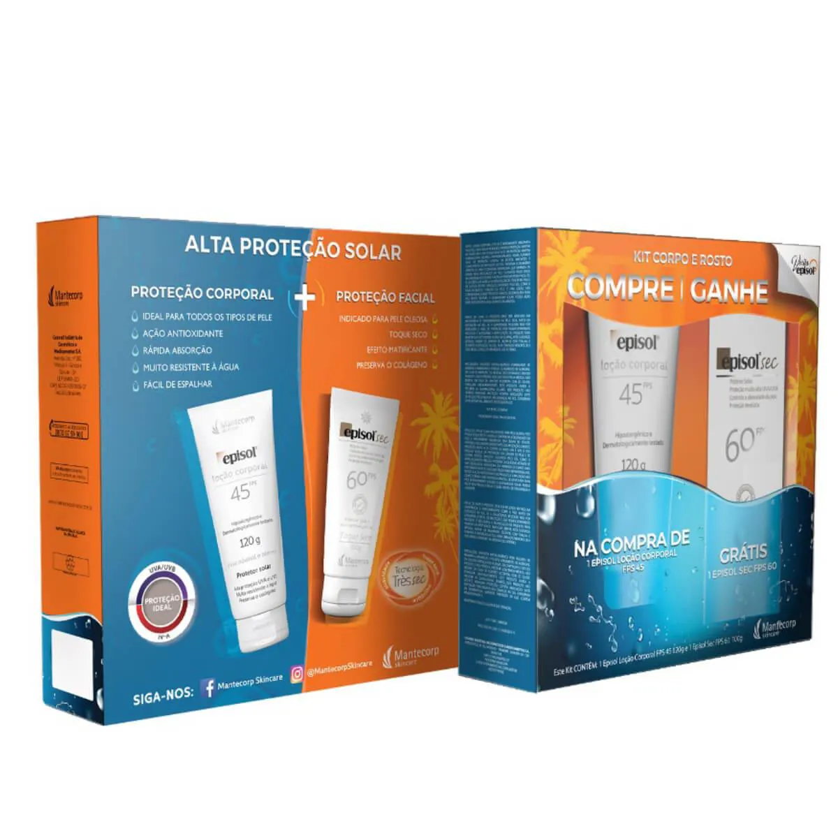 Kit Episol Protetor Solar Corporal FPS 45 com 120g + Protetor Solar Facial Sec FPS 60 Toque Seco com 100g