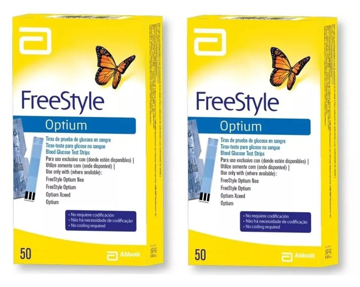 Kit 2 Tiras Glicemia Glicose Diabete FreeStyle Optium 50Un