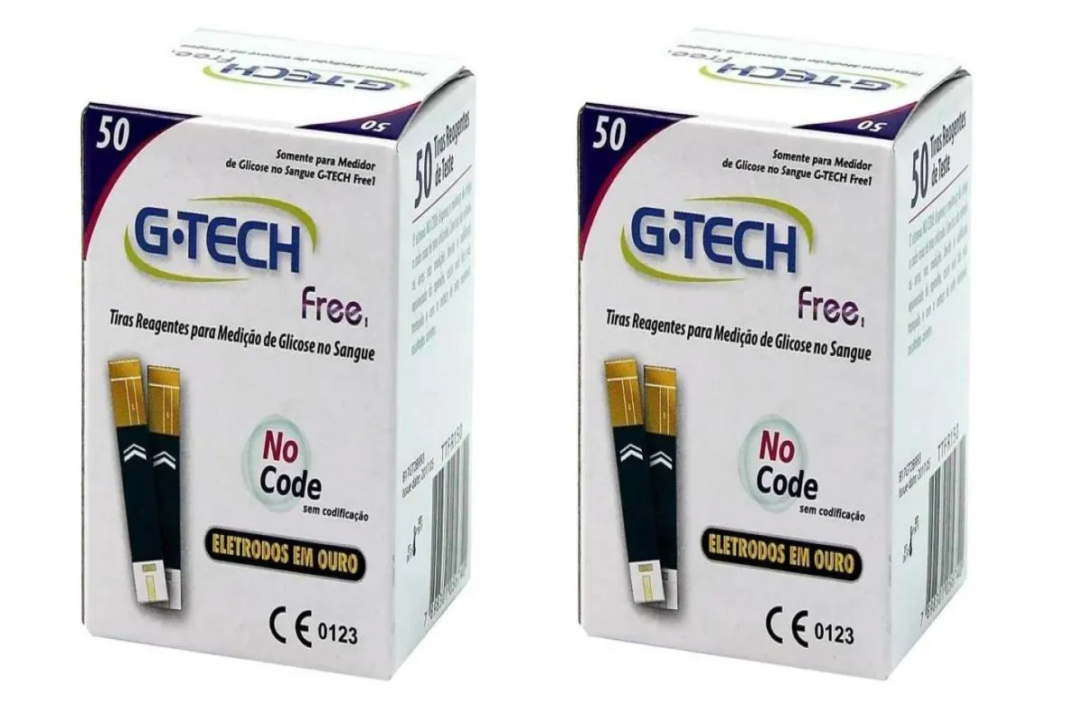 Tiras de Glicemia Tiras para Teste de Glicose G-Tech FREE NO CODE eletrodos em OURO C/50 - TTFR150 - Kit C/02
