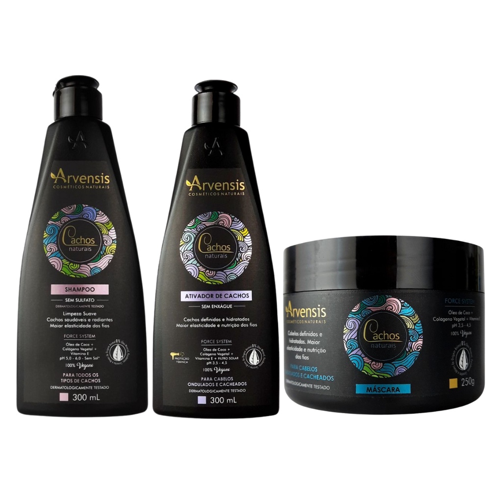 Kit Arvensis Cachos Shampoo Condicionador Máscara 2x1