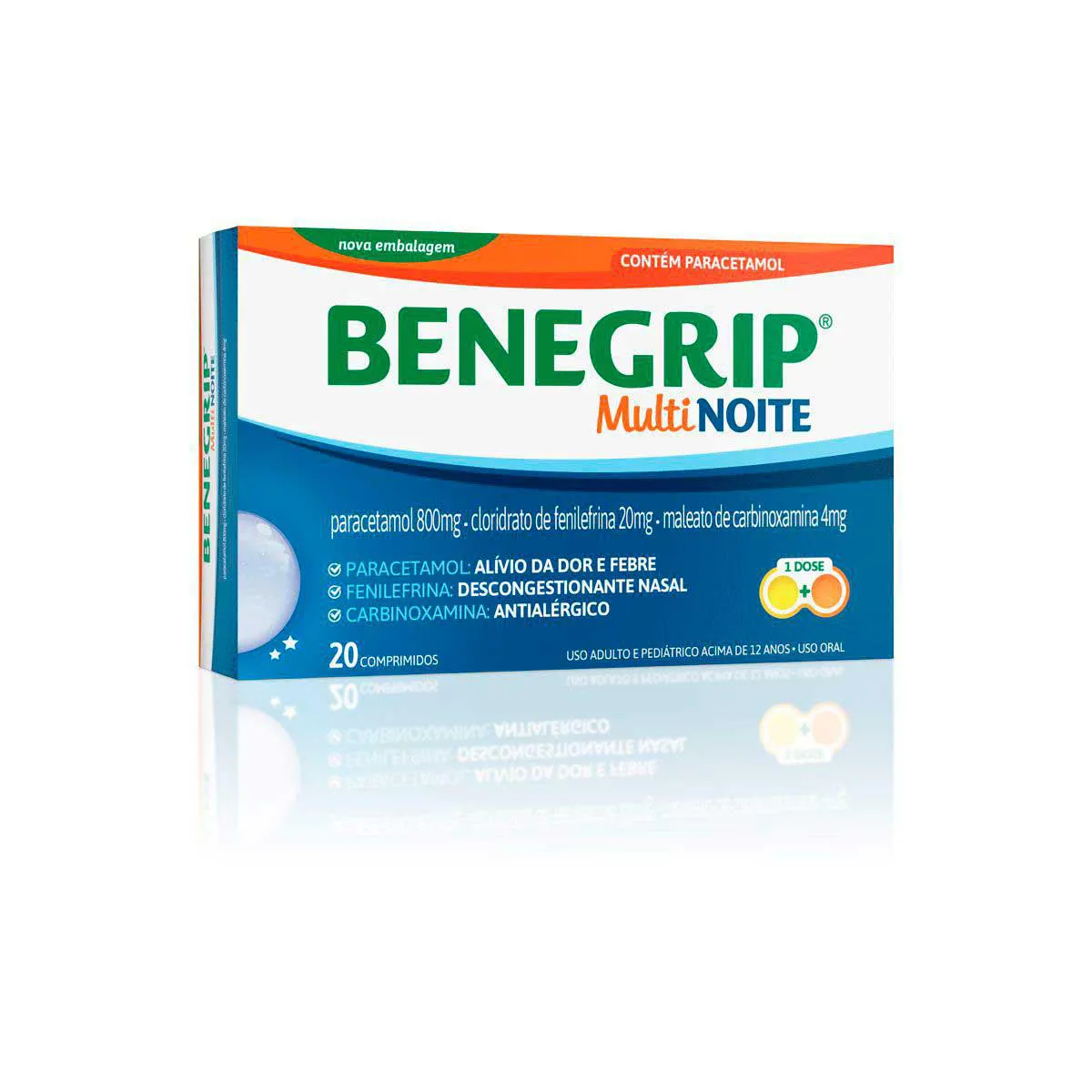 Benegrip MultiNoite Paracetamol 800mg + Cloridrato Fenillefrina 20mg + Maleato de Carbinoxamina 4mg 20 comprimidos