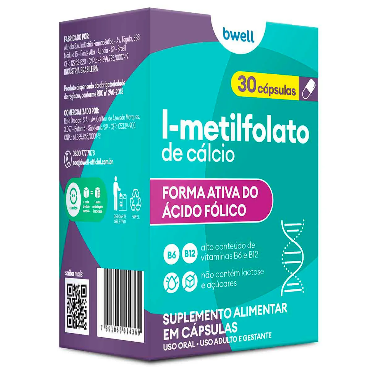 L-Metilfolato de Cálcio Bwell 30 cápsulas