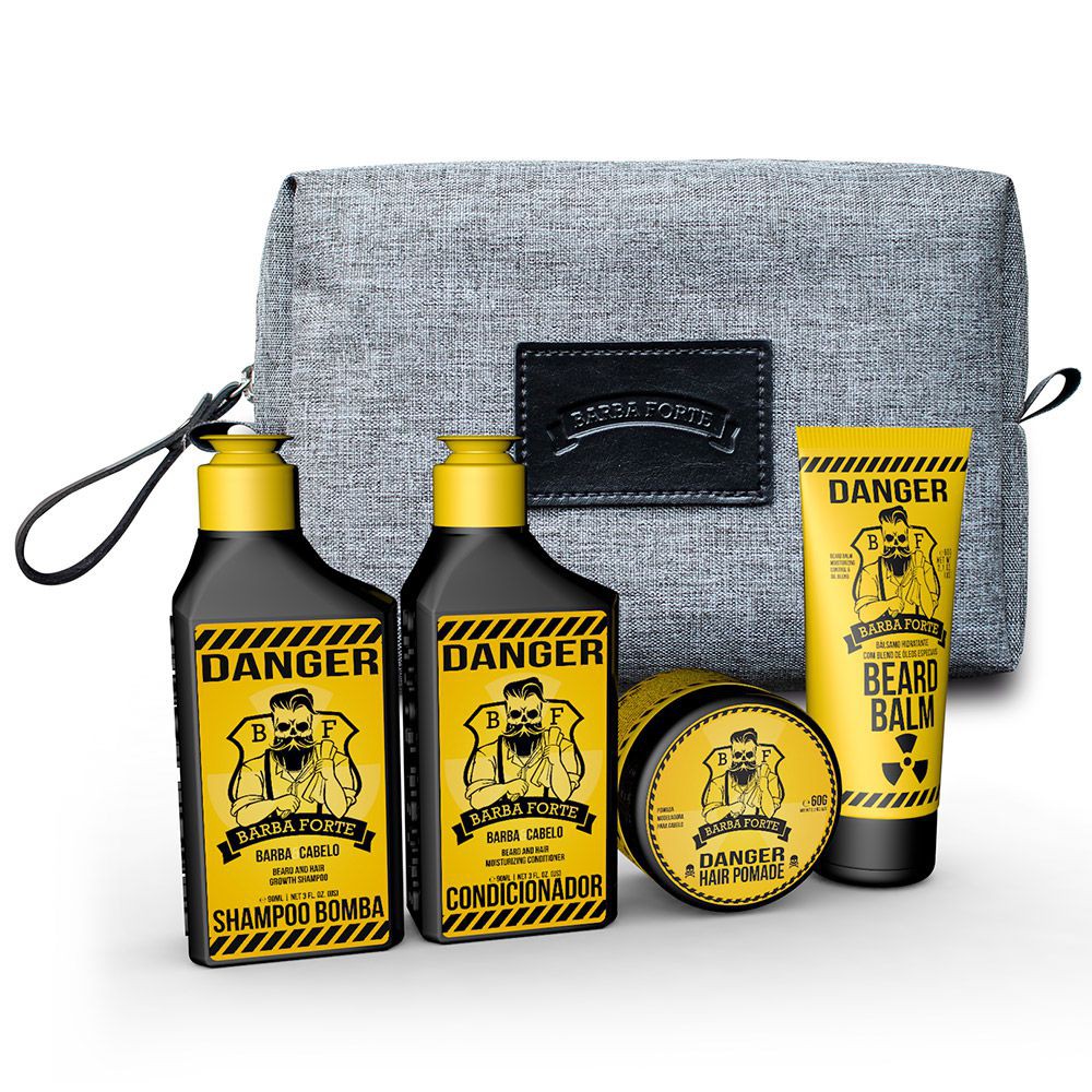Kit Viagem Danger Barba E Cabelo com Necessaire Barba Forte (4 produtos)