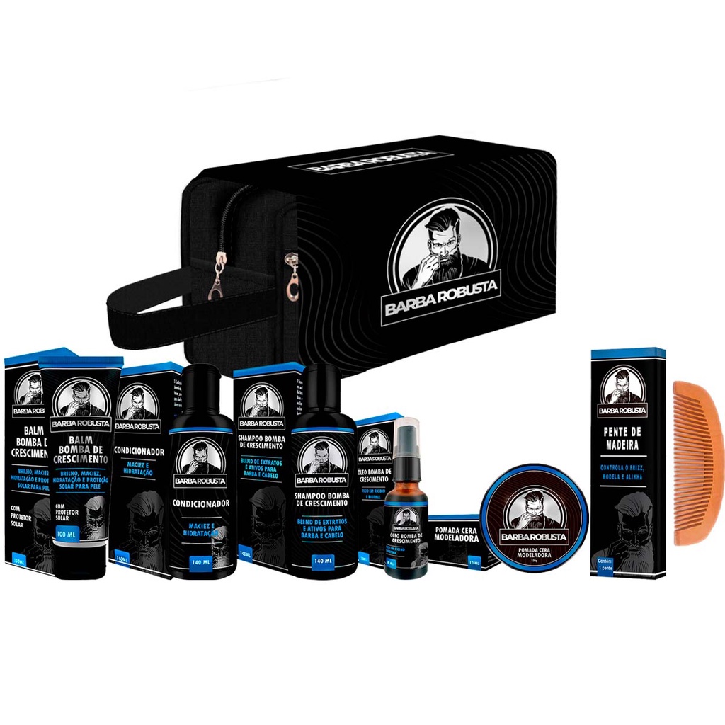 Kit barba Robusta Shampoo Condicionador Óleo Necessaire e pente