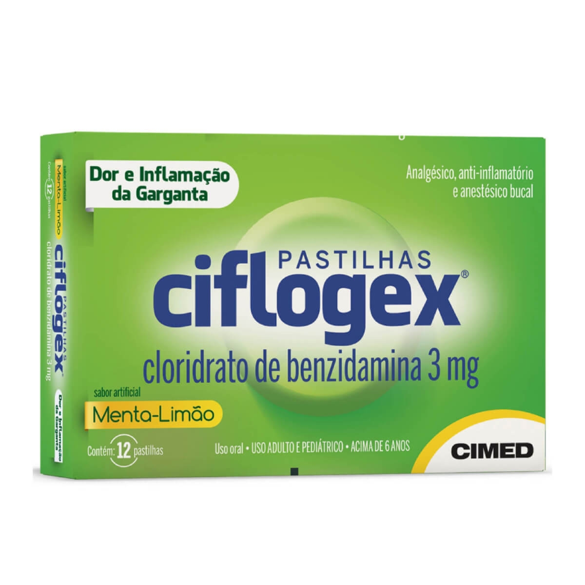 Pastilhas para Garganta Ciflogex Sabor Menta e Limão com 12 unidades