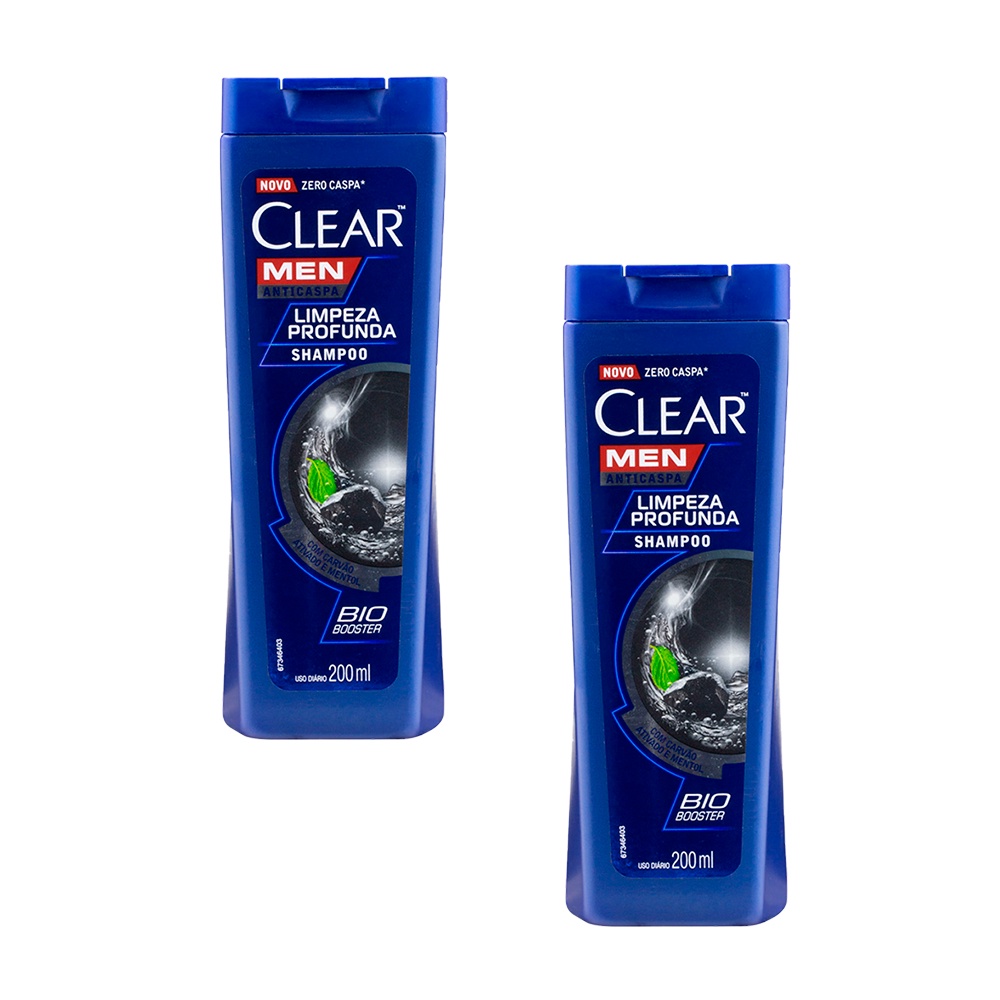 Shampoo Clear Anticaspa Men Limpeza Profunda Com Carvão Ativado E Mentol 200ml (2 Und)