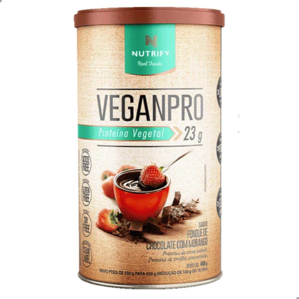 Proteína Vegetal Nutrify Veganpro Fondue de Chocolate com Morango 550g