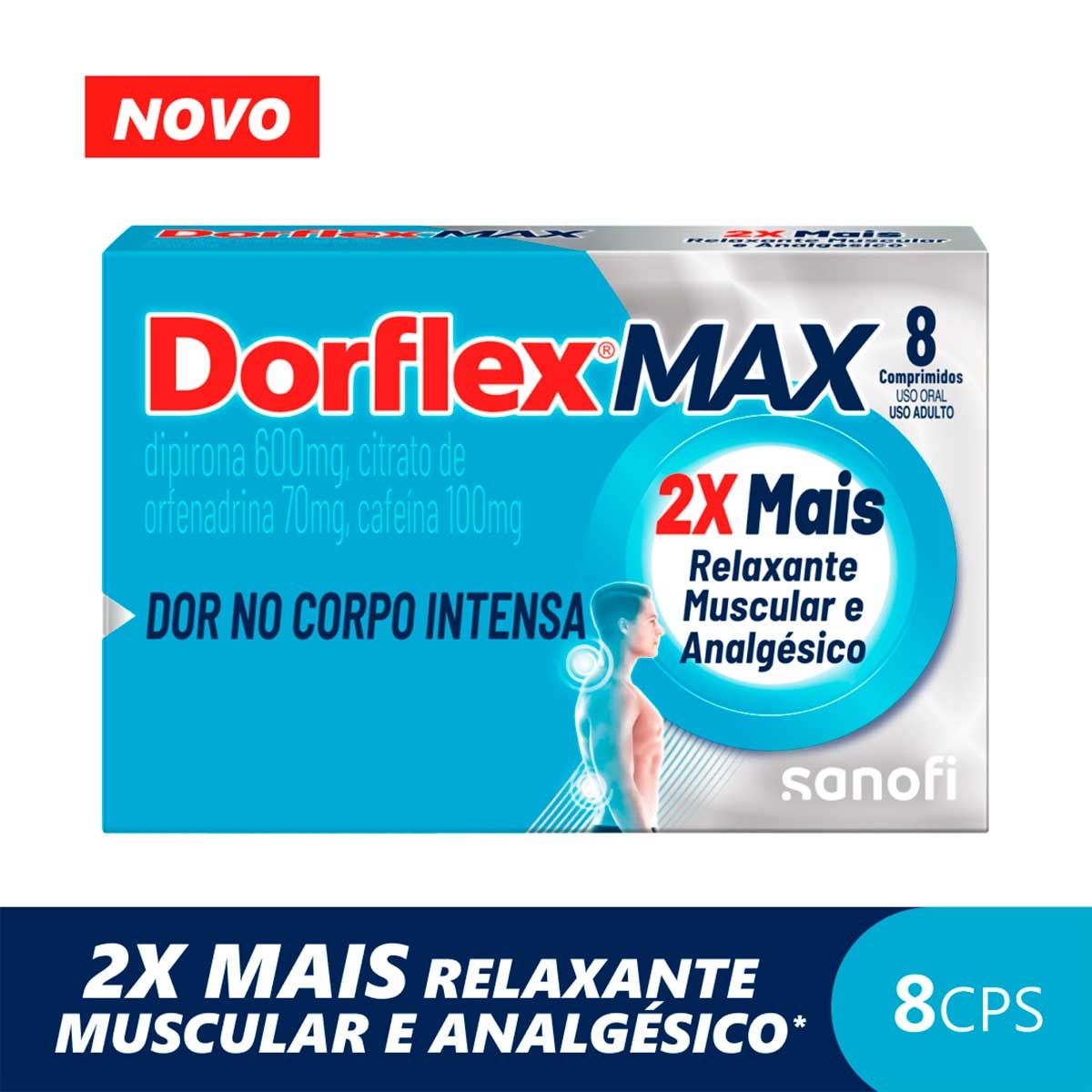 Dorflex Max Dipirona 600mg + Citrato de Orfenadrina 70mg + Cafeína 100mg 8 comprimidos