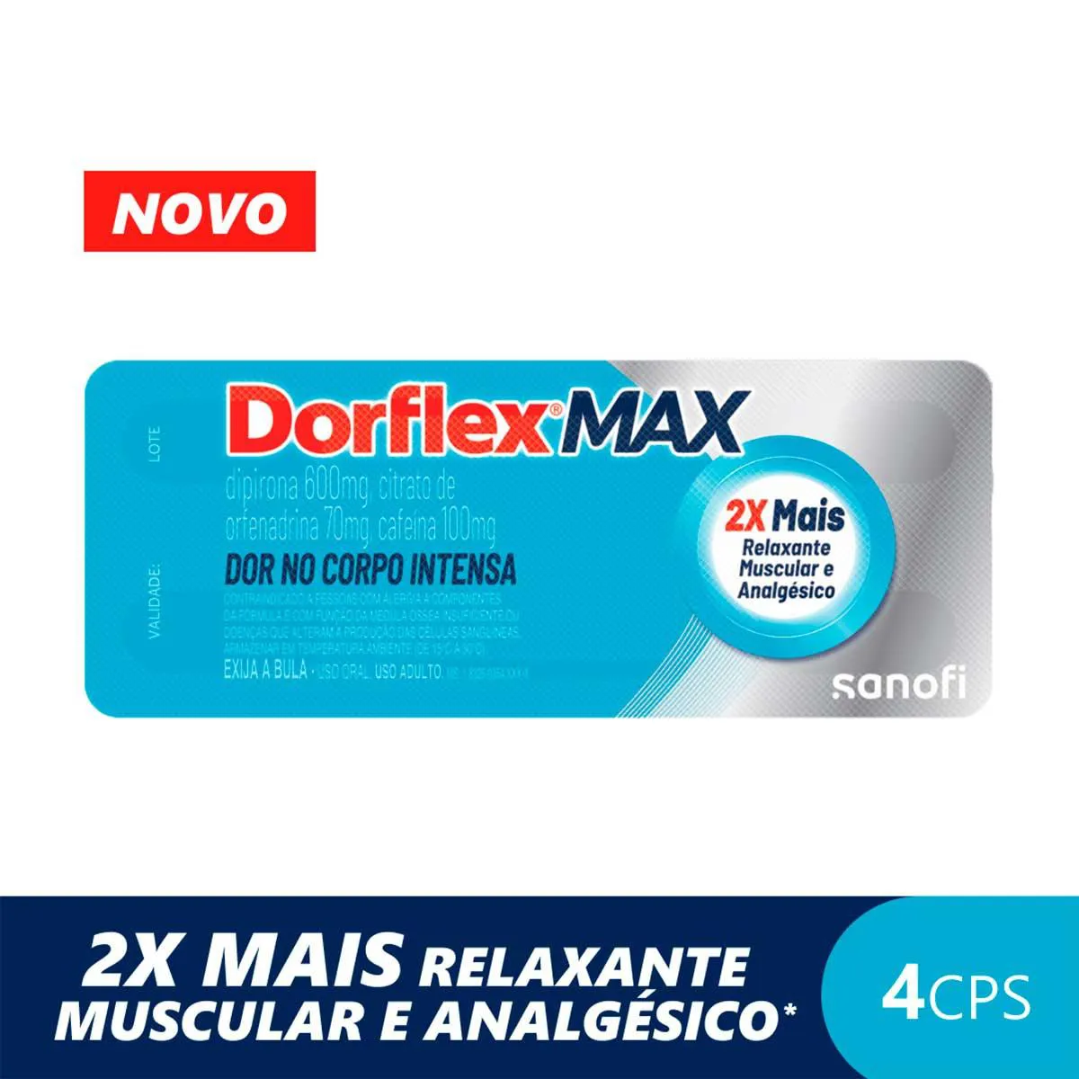 Dorflex Max Dipirona 600mg + Citrato de Orfenadrina 70mg + Cafeína 100mg 4 comprimidos