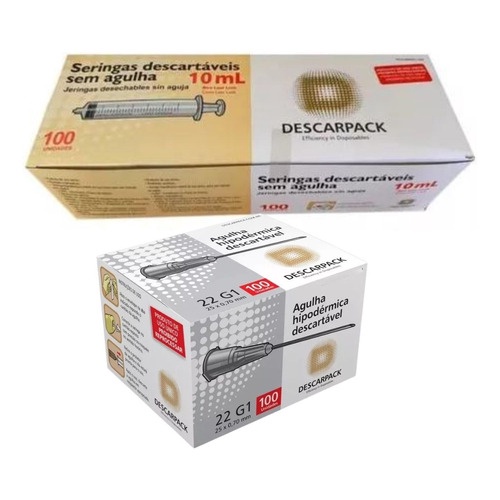 Kit 100 Seringa 10ml + 100 Agulhas Descartáveis HiPodérmicas