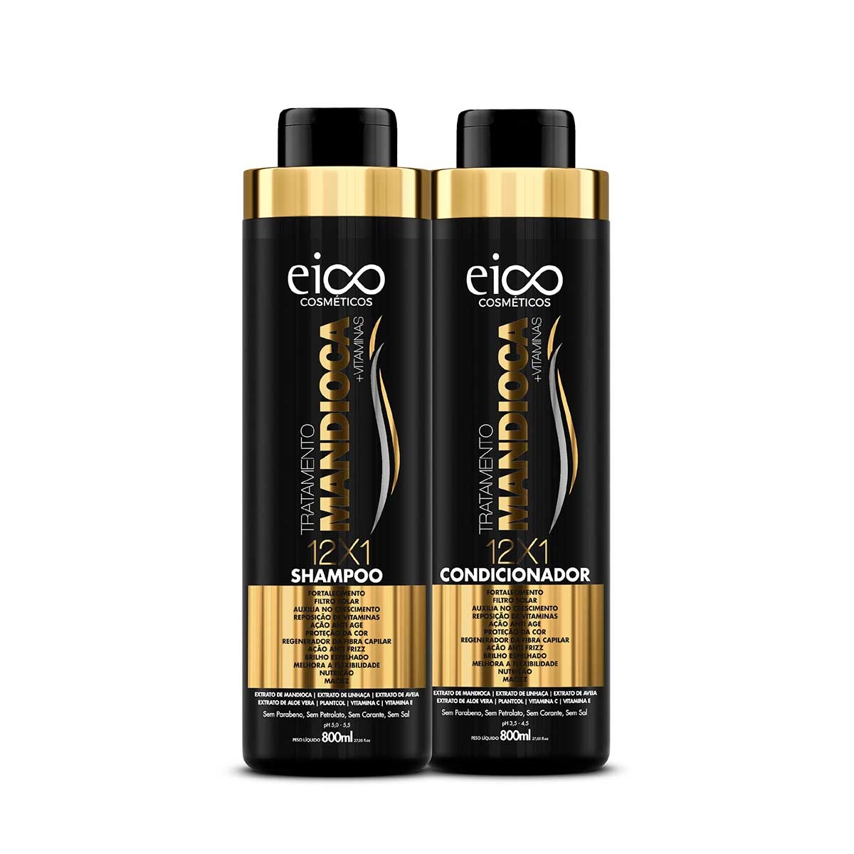 Kit Eico Tratamento Mandioca Shampoo com 800ml + Condicionador com 800ml
