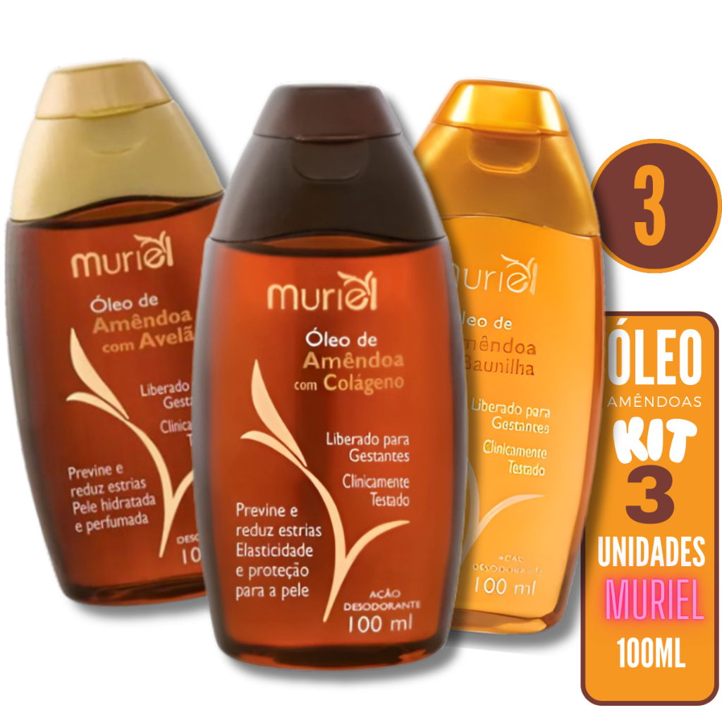 Kit 3 Óleo de Amêndoas Muriel 100ml ( Colágeno / Baunilha / Avelã)