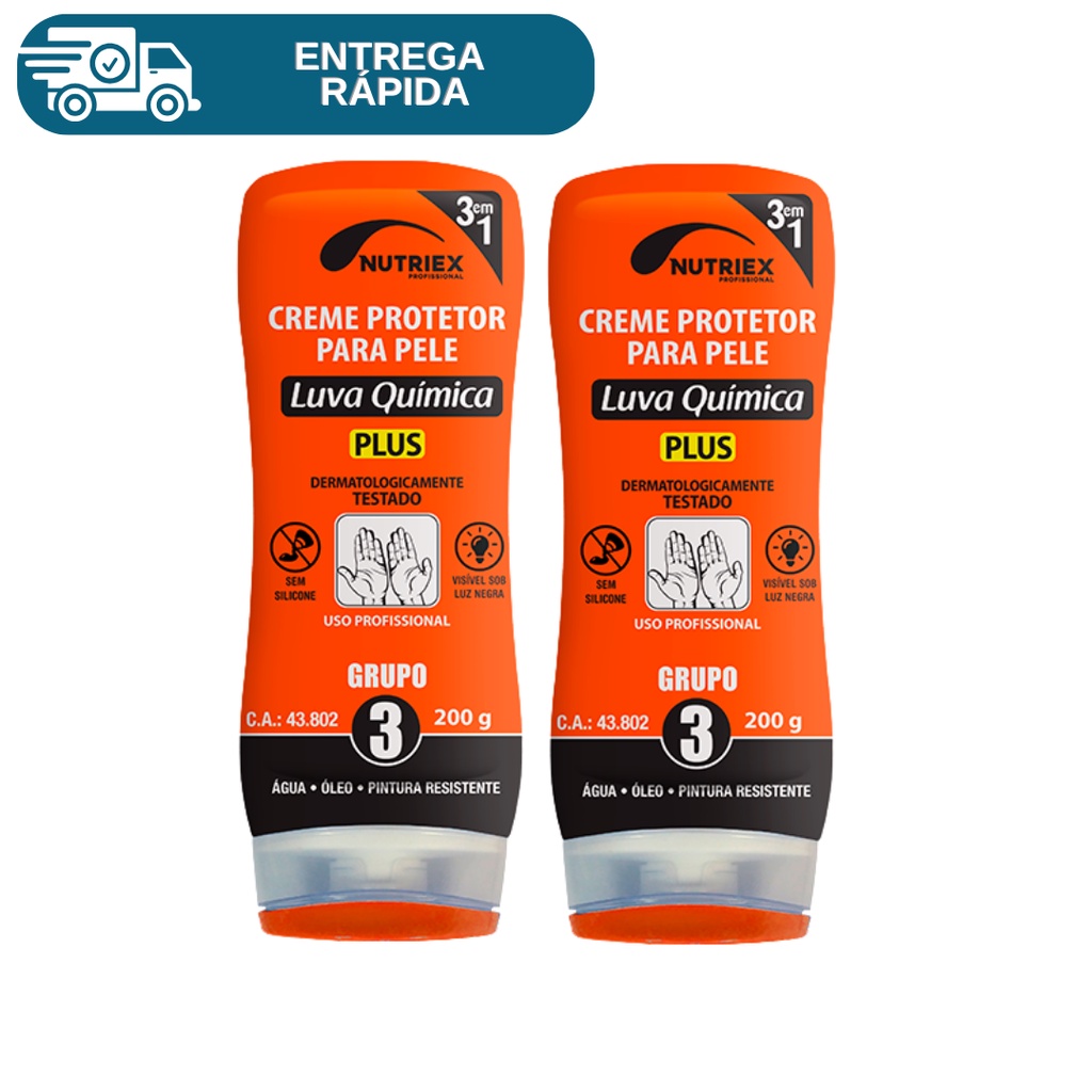 Kit 2 Creme De Proteção Luva Química Grupo 3 Nutriex 200g Camada Invisivel Para As Mãos e Pele Água Oleo Pintura G3
