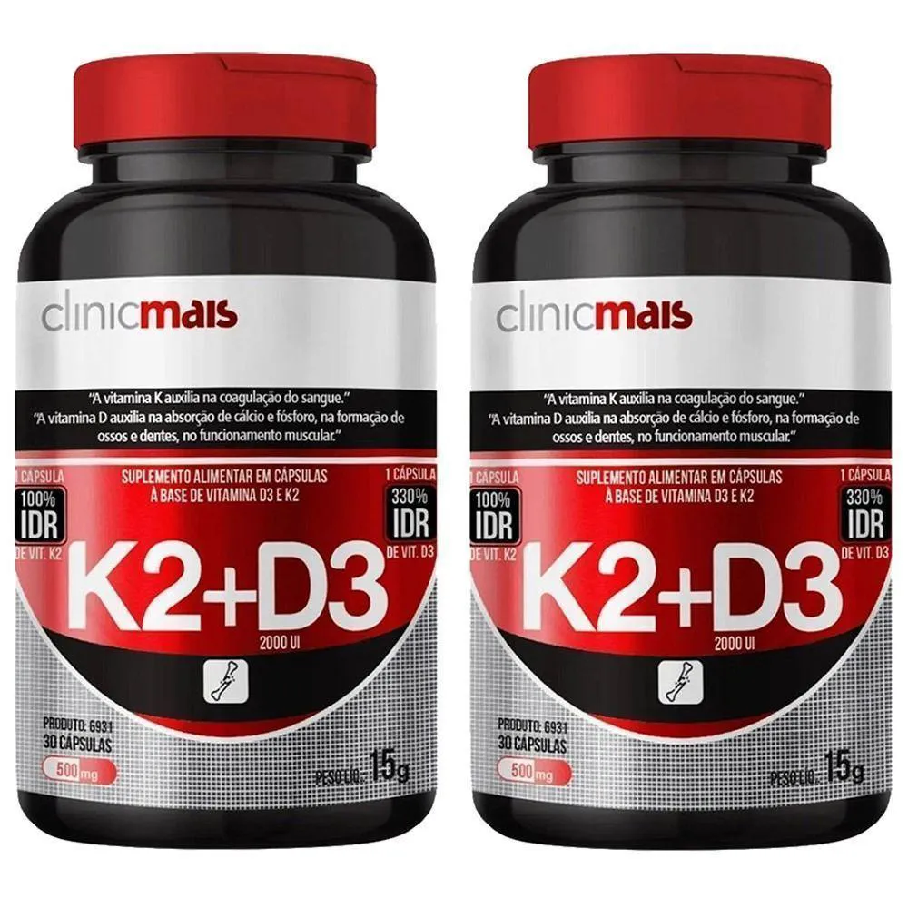 KIT 2X VITAMINAS K2 + D3 30 CáPSULAS CLINICMAIS