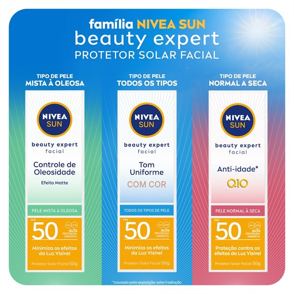 Protetor Solar Beauty Fps 50 Expert Facial 50g -Nivea Sun Pele Sensivel/Pele Mista À Oleosa/ Pele Normal À Seca/Todos Os Tipos De Pele