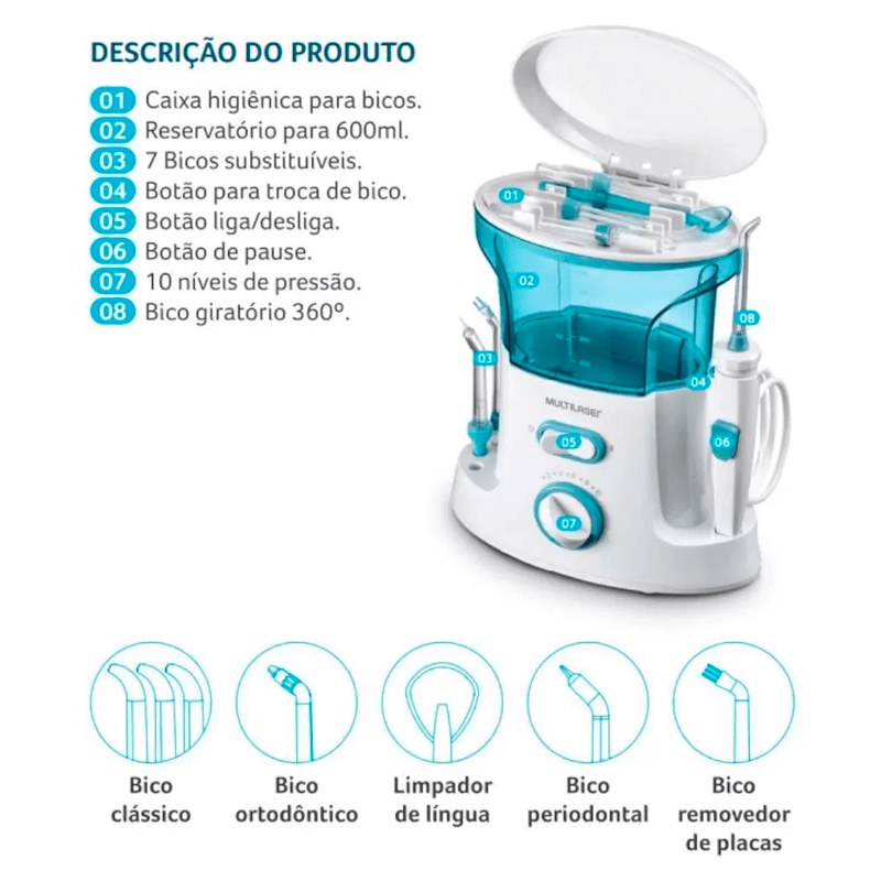 Irrigador Oral Multilaser com 7 Bicos 600ML