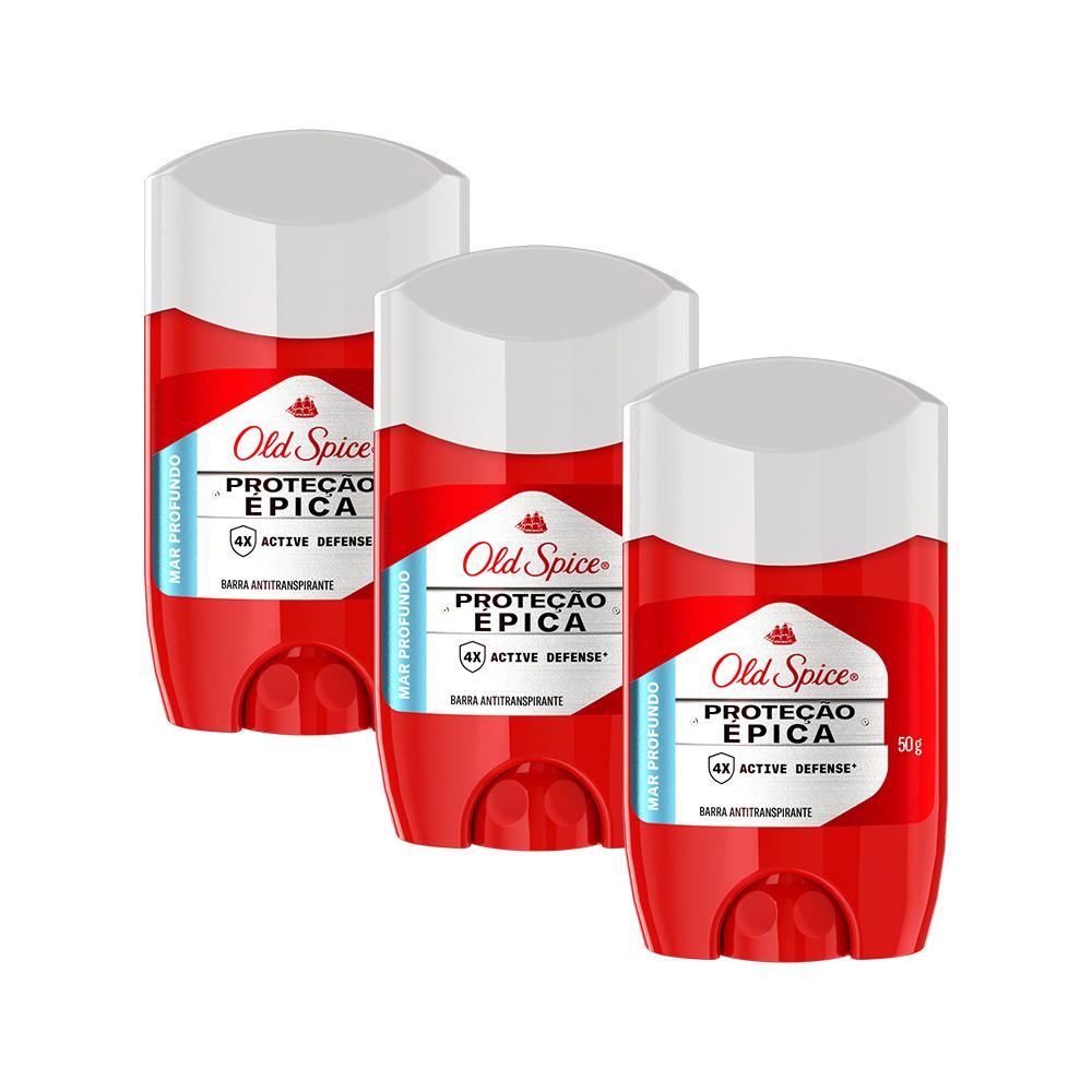 Kit 3 Desodorante em Barra Old Spice Proteção Épica Mar Profundo 50g