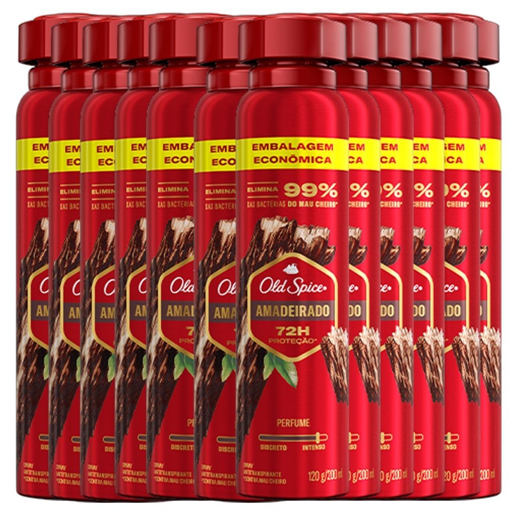 Kit Desodorante Spray Antitranspirante Old Spice Amadeirado 200ml - 12 Unidades