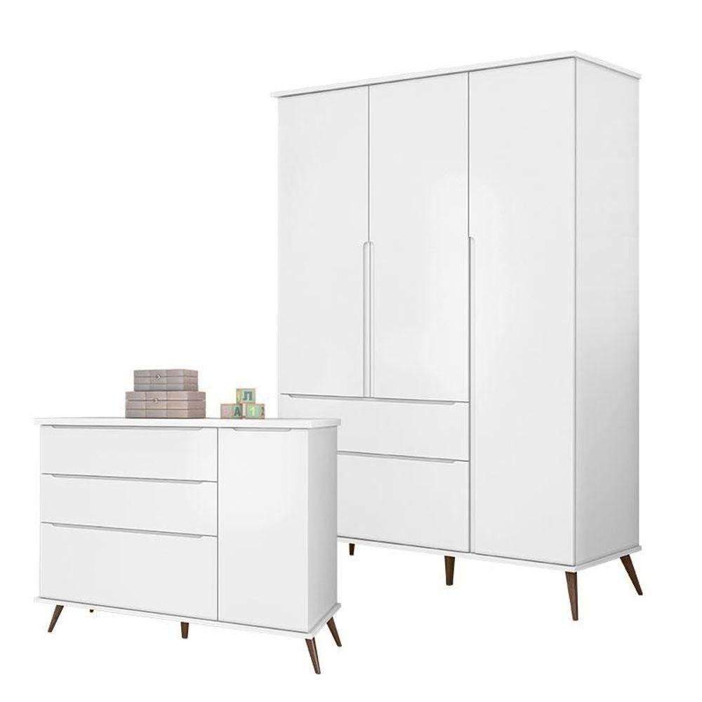 Cômoda E Guarda Roupa Infantil Retrô Fernanda Branco Acetinado Bétula - Carolina