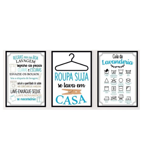 Kit Placas Decorativas 3 peças Roupa Suja Lava em Casa Lavanderia