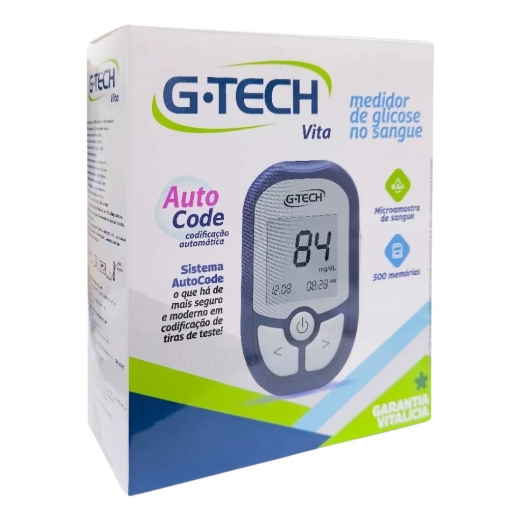 Kit Aparelho p/ Monitoramento de Glicose c/ Caneta, 10 lancetas e 10 fitas Vita G-Tech