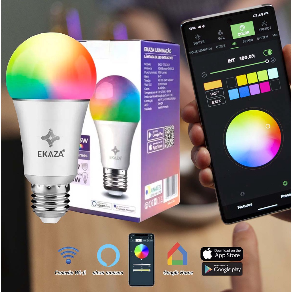Smart Lâmpada15W LED EKAZA Inteligente RGB Wi-fi Compativel com Alexa Google tuya smart home casa positivo