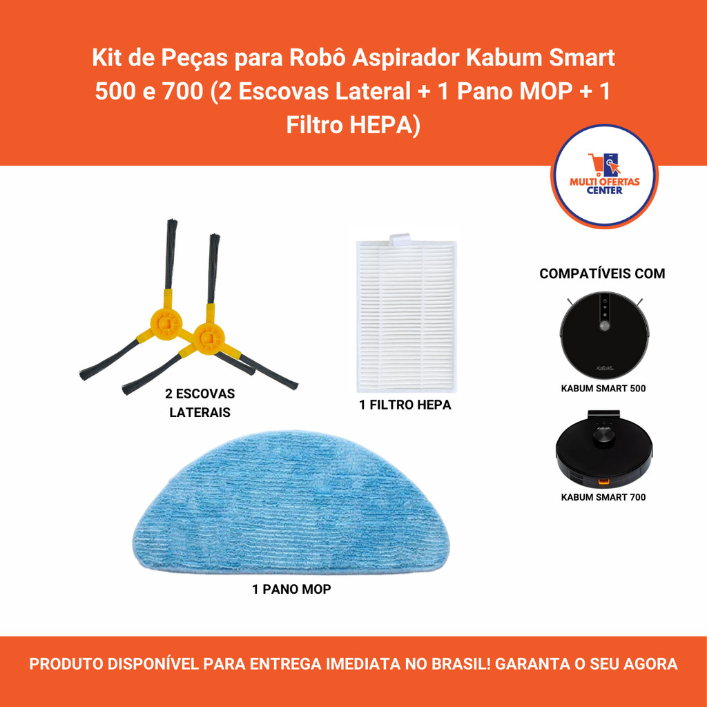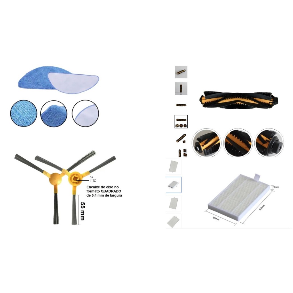 KIT REPOSICAO ROBO ASPIRADOR KABUM SMART 100 500 700, PANO, ESCOVAS LATERAIS E PRINCIPAL E FILTRO