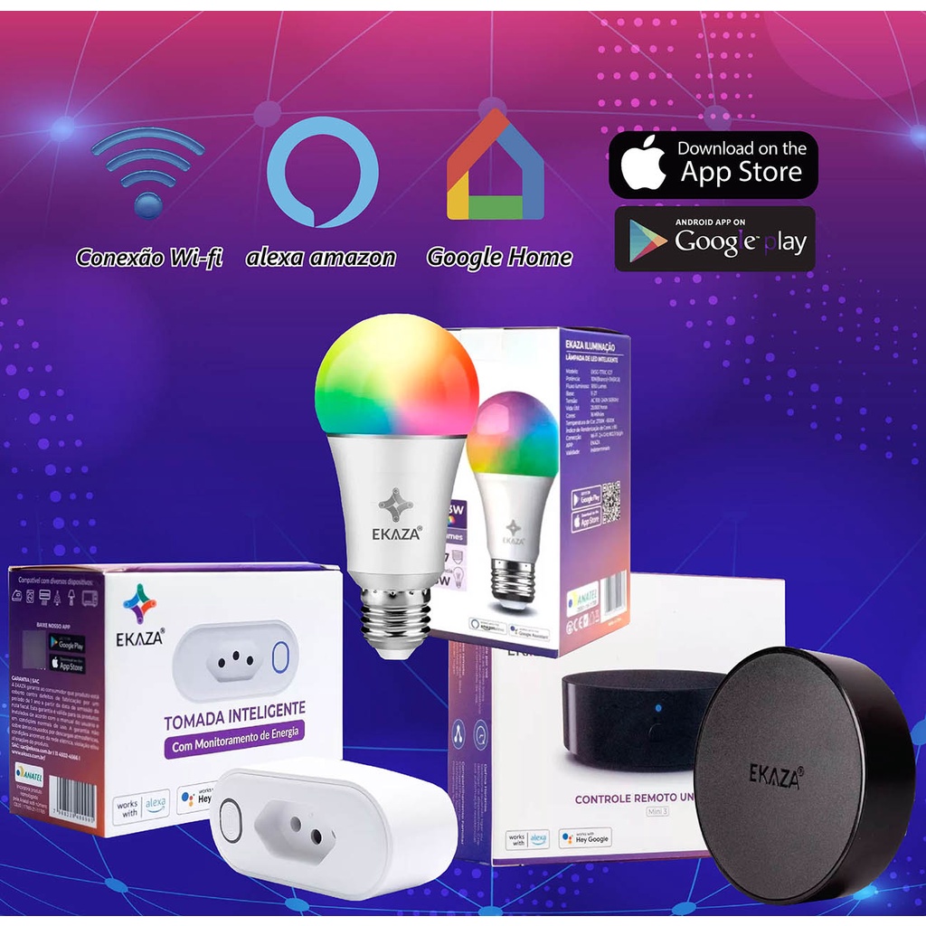 Kit Casa Inteligente Lâmpada Tomada Controle Remoto Compativel Alexa Google Home Smart Life Tuya Automocação Residencia