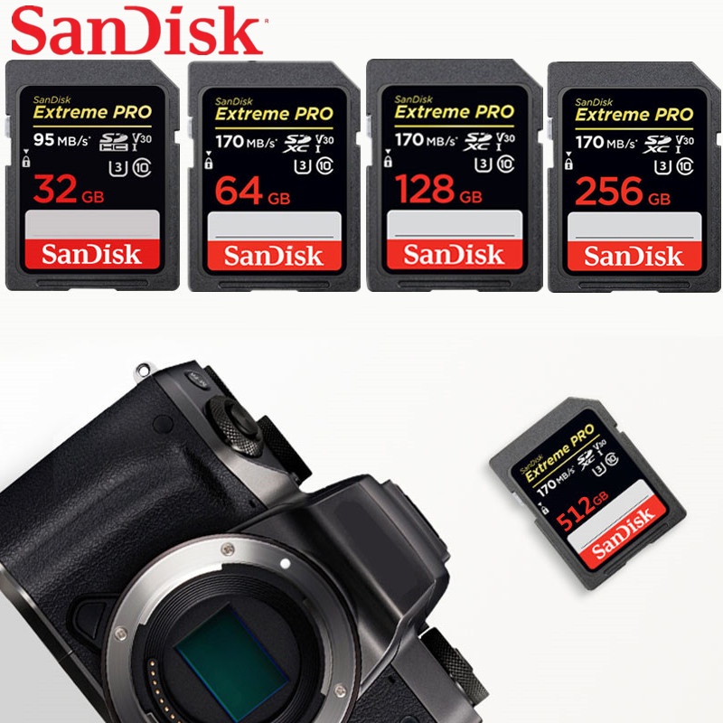 Cartão De Memória Sandisk Extreme Pro Sd 512gb 256gb 128gb 64gb U3 4k Classe De Alta Velocidade 10 170mb/S V30 Para Câmera