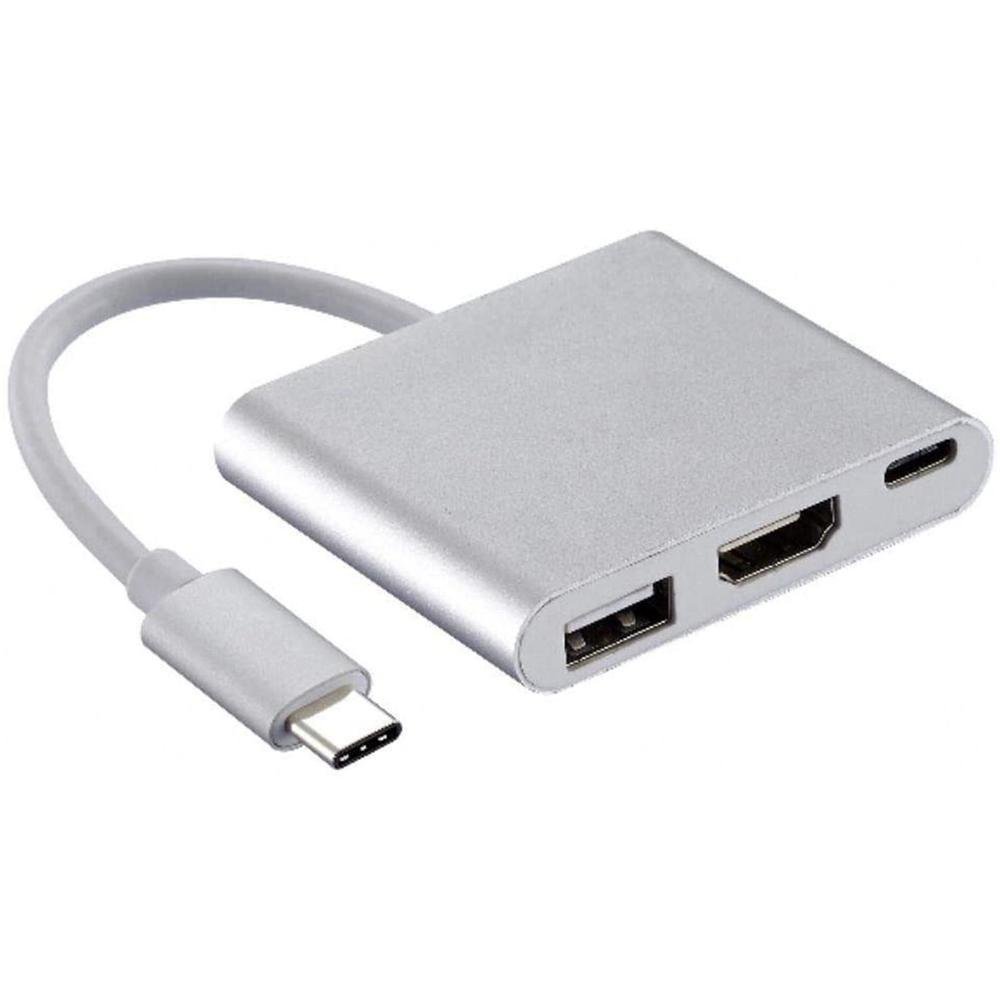 Adaptador 3x1 - Cabo Tipo C HDTV, Entrada Tipo c Fêmea, Usb 3.0 Thunderbolt 3 X Hdmi Usb 3.0