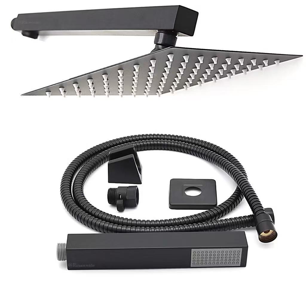 Kit Ducha Chuveiro De Banheiro 30cm Inox Quadrada Com Ducha Manual+1,5m Mangueira Preto/Cromado