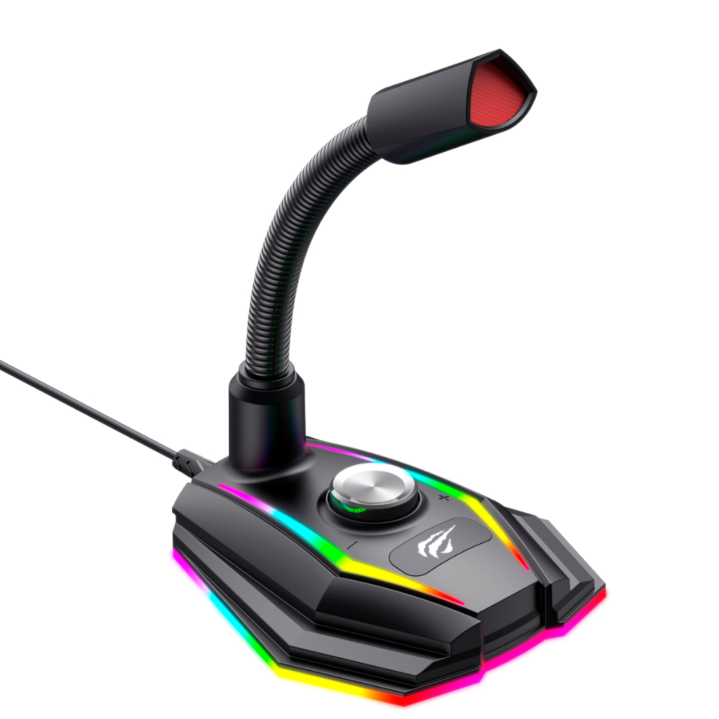 HAVIT GK56B Microfone Gamer LED RGB Pescoço de Ganso USB Para PC/Streaming/Podcast/Studio - Preto