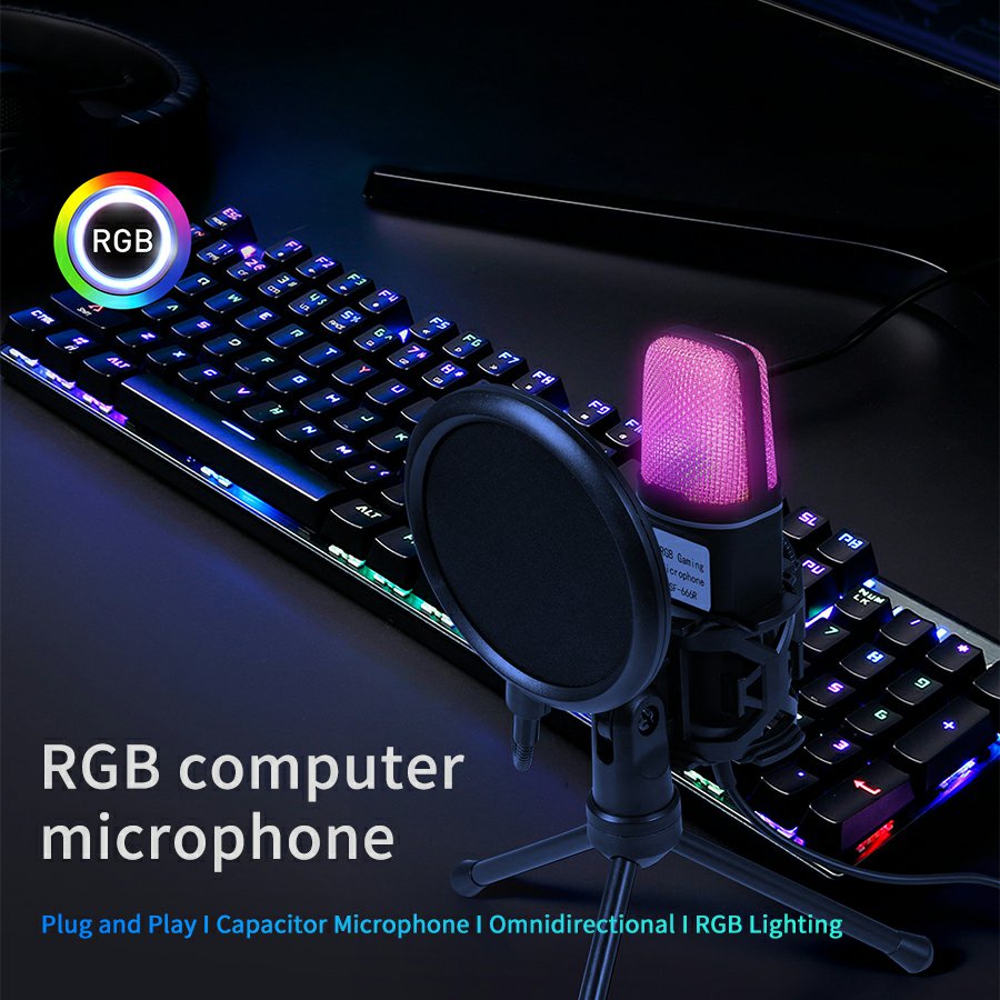 Microfone Condensador Gamer USB RGB SF-666R Mic Profissional para Podcast Estúdio De Gravação Streaming Jogos Laptop Desktop PC