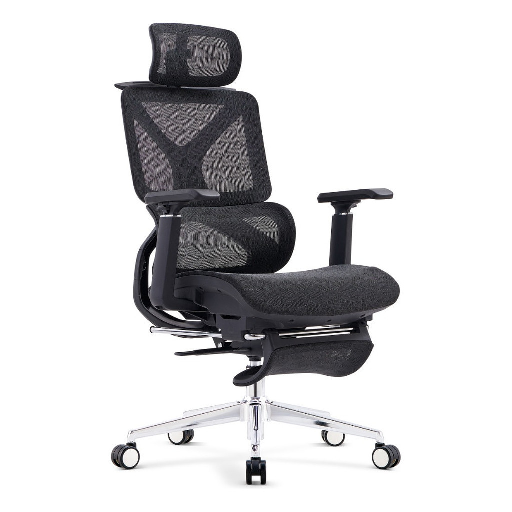 Cadeira De Escritório Presidente Alta Giratória Regulável Ergonômica Apoio Cervical Tecido Tela Mesh Ribs Preta