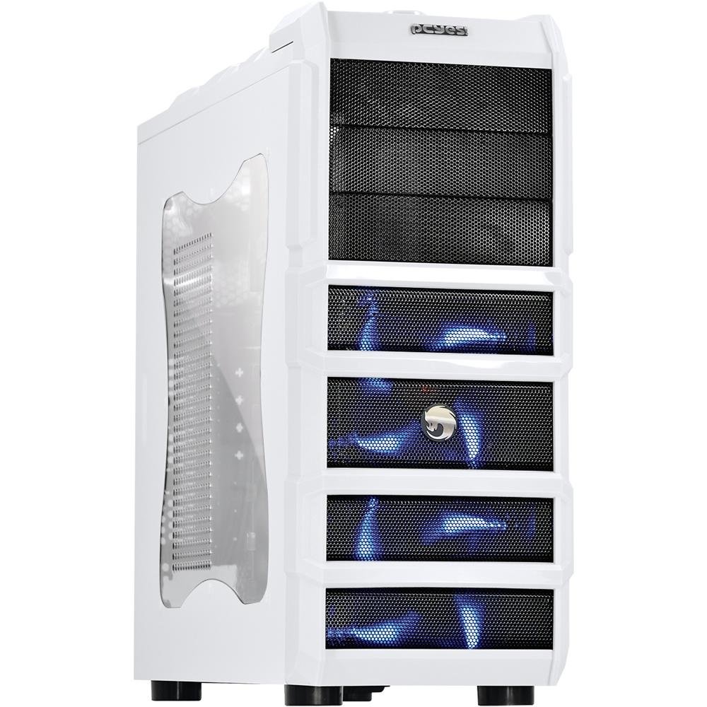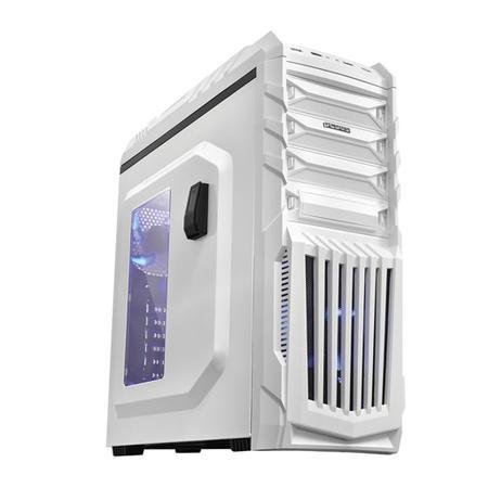 Gabinete Gamer PCYES mid-tower Rhino Branco com 3 fans LED Azul Lateral em acrílico – RHINOBCOAZ3FCA