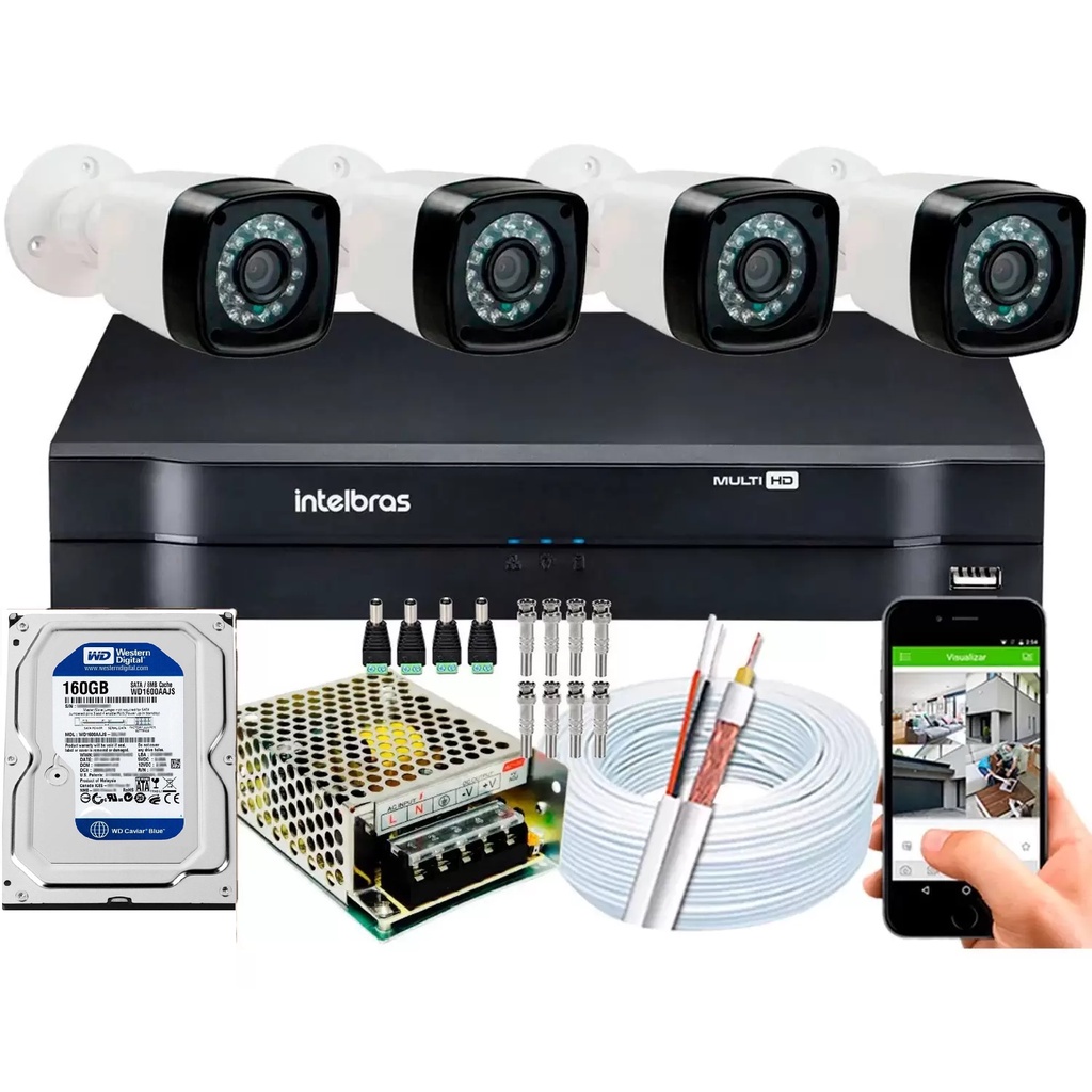 Kit 4 Cameras Segurança 720p Full Hd Dvr Intelbras 4ch c/hd