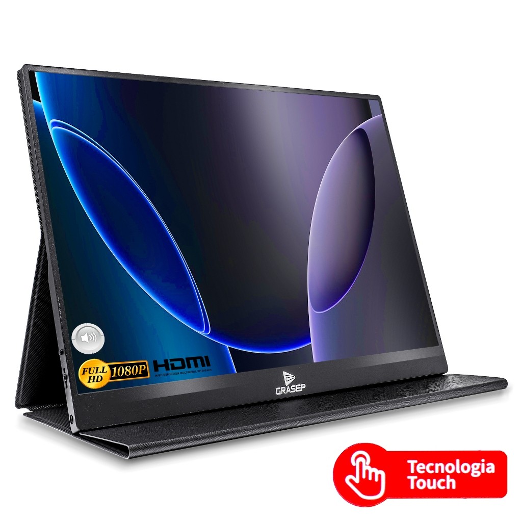 Monitor Externo Portátil IPS TOUCH SCREEN Ultra Slim Fino Gamer 15.6 Polegadas 1080p Full Hd Áudio Estéreo Peso Leve