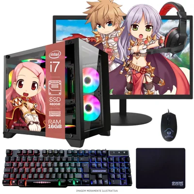 Computador Pc Gamer Completo Tob Intel Core I7 Ssd 480gb 16gb Teclado Mouse Mouse Pad E Headset Gamer Monitor 19" Window