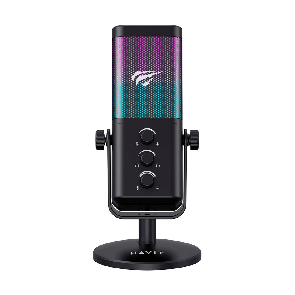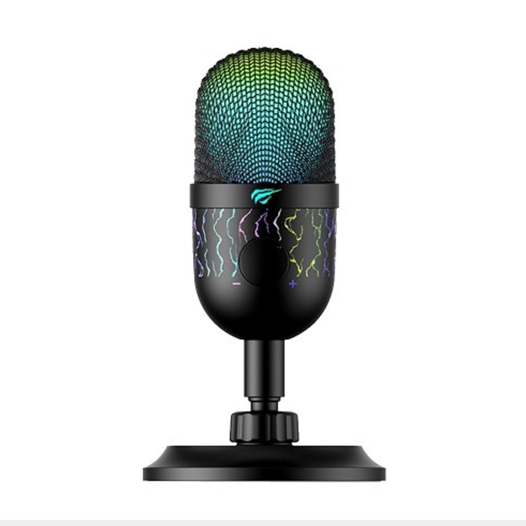 Microfone De Mesa Gamer Havit, RGB, USB, Preto - Gk56b