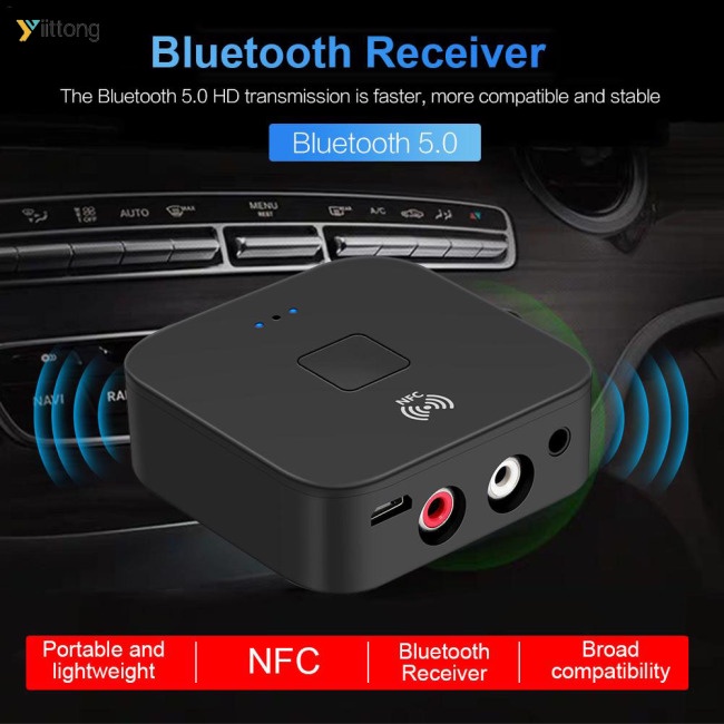 YT-Receptor De Áudio Bluetooth 5.0 Transmissor Sem Fio NFC Carro Adaptador De Alto-Falante 3.5mm AUX + 2 RCA