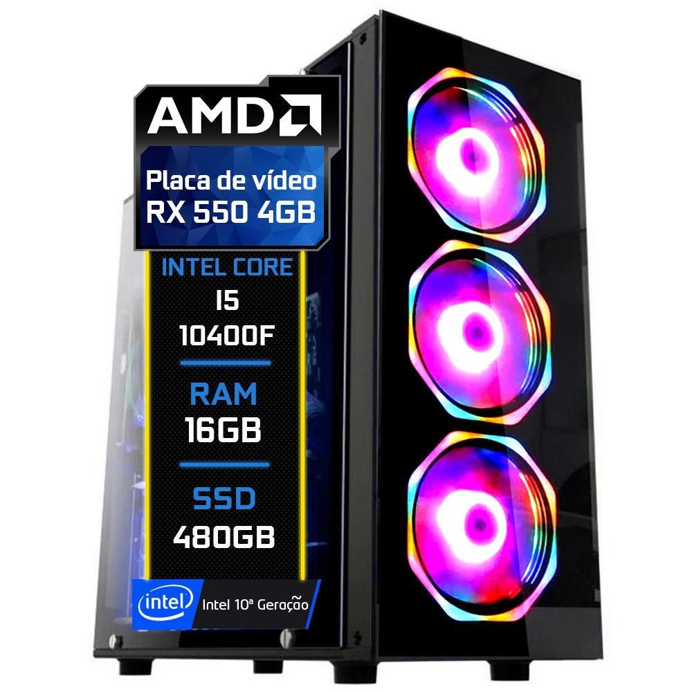 Pc Gamer Fácil Intel Core I5-10400f, 16GB DDR4, AMD RX 550 4GB, SSD 480GB, Windows 10 Trial - Fonte 500W