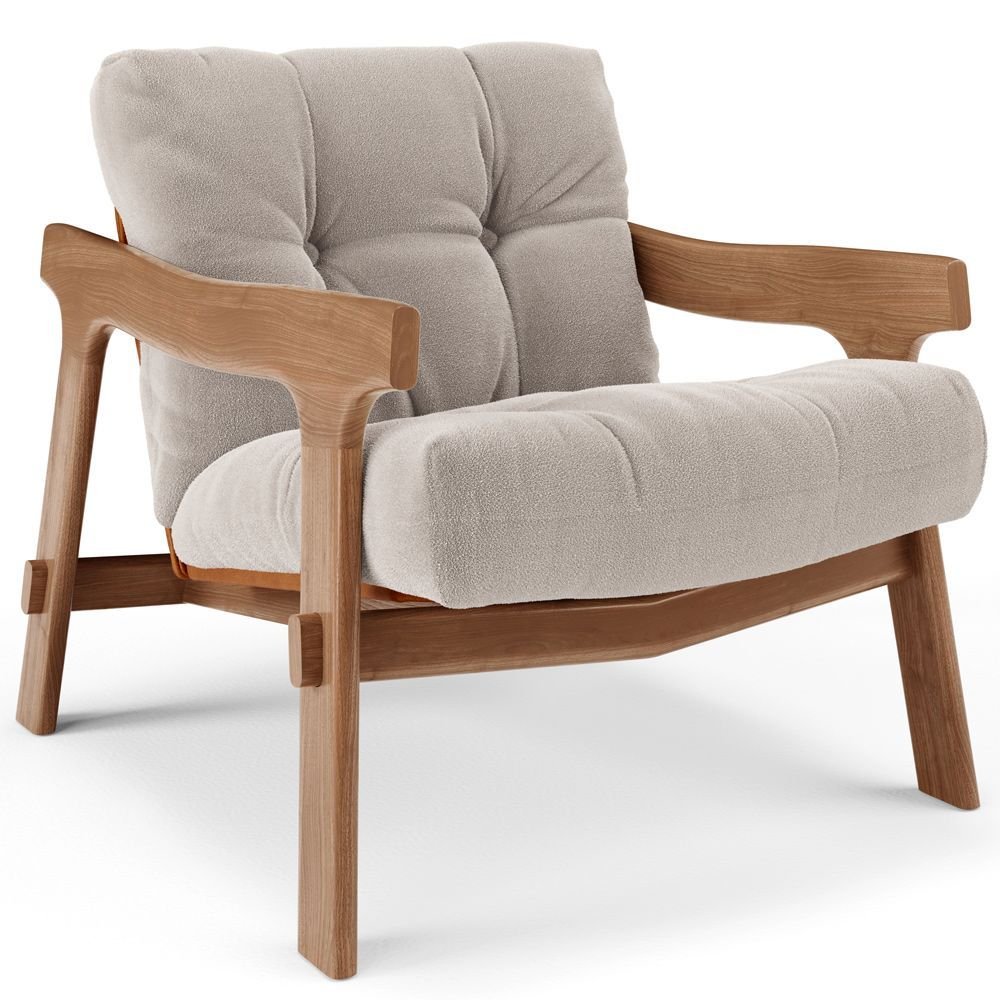Poltrona com Braço Oslen Algodão Bege Madeira Cedro Junco Natural Terracota